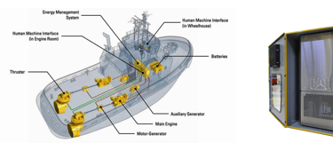 Electric/hybrid propulsion systems, AC/DC/hybrid bus configurations, split-bus/combined bus systems, Marine Classification Society requirements, energy optimization, electric drive, energy storage systems, variable speed gensets, generators, motors, inverters, thrusters, propellers
